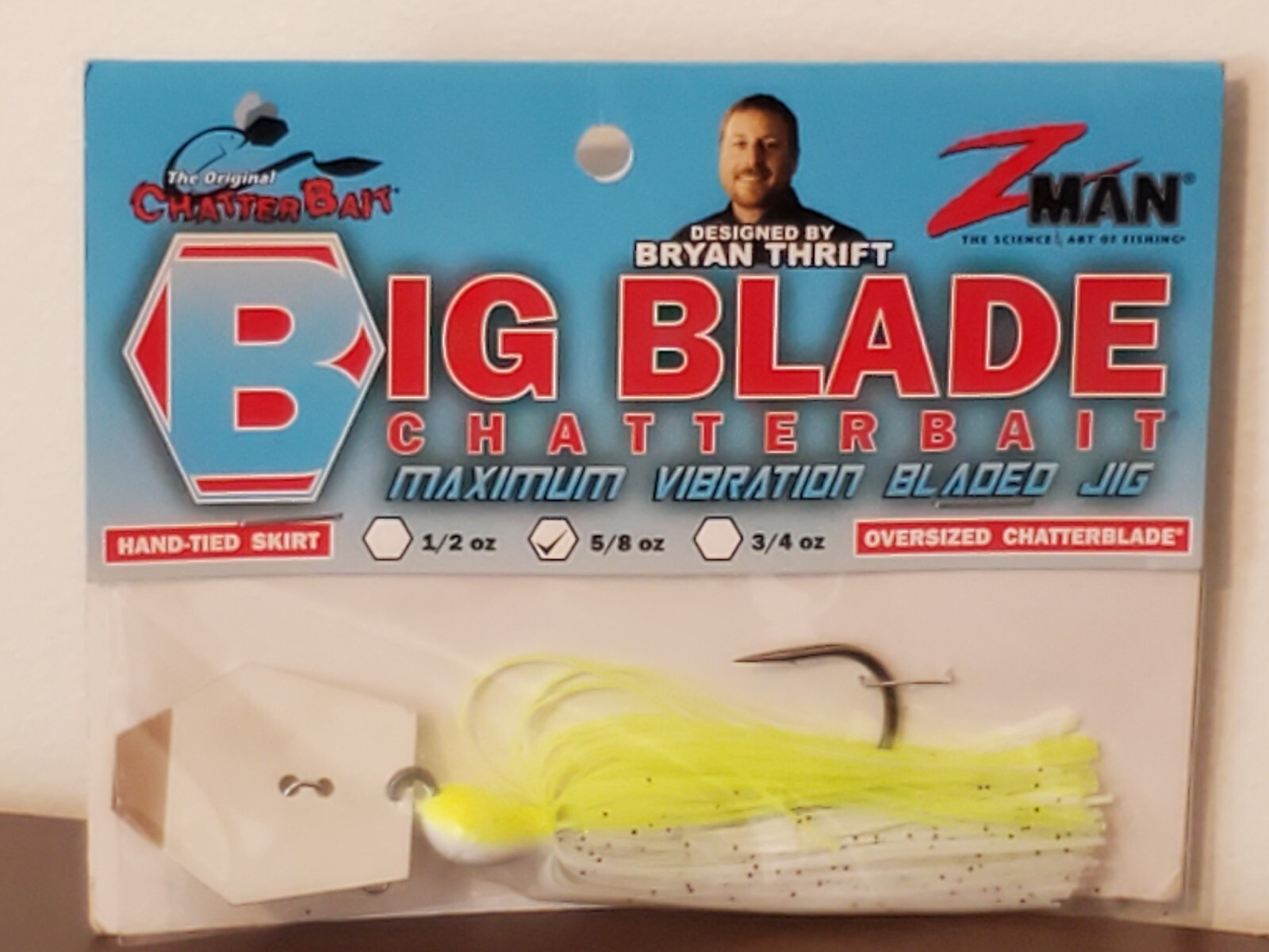 Z-Man Big Blade ChatterBait Max Vibration Jig 5/8oz CBB58-04 Chartreuse / White