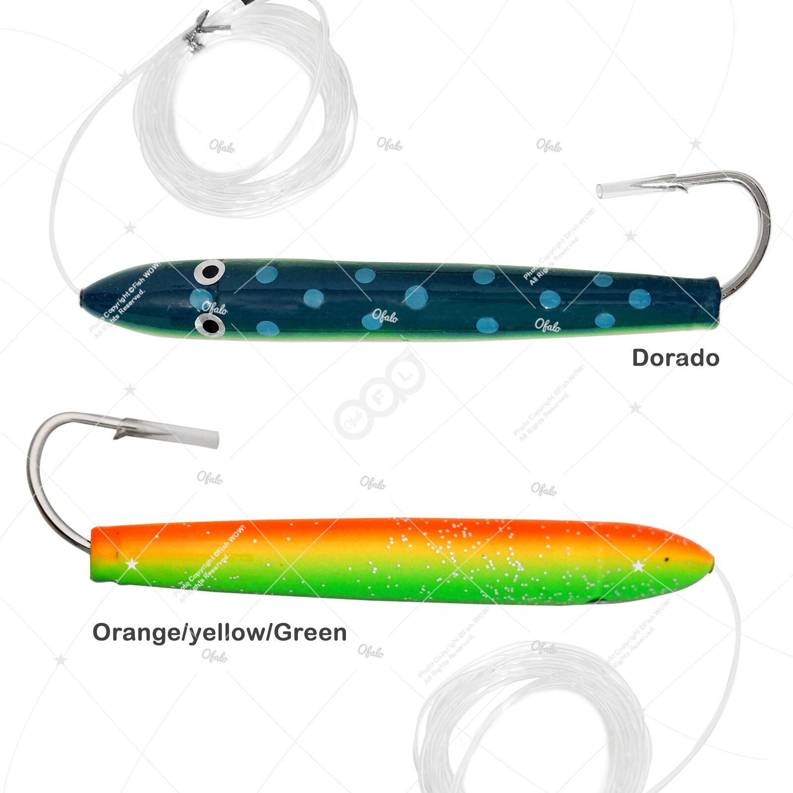2pcs Fishing Cedar Plugs Rig Trolling Wooden Lure w/ 10/0 Hook Orange Dorado