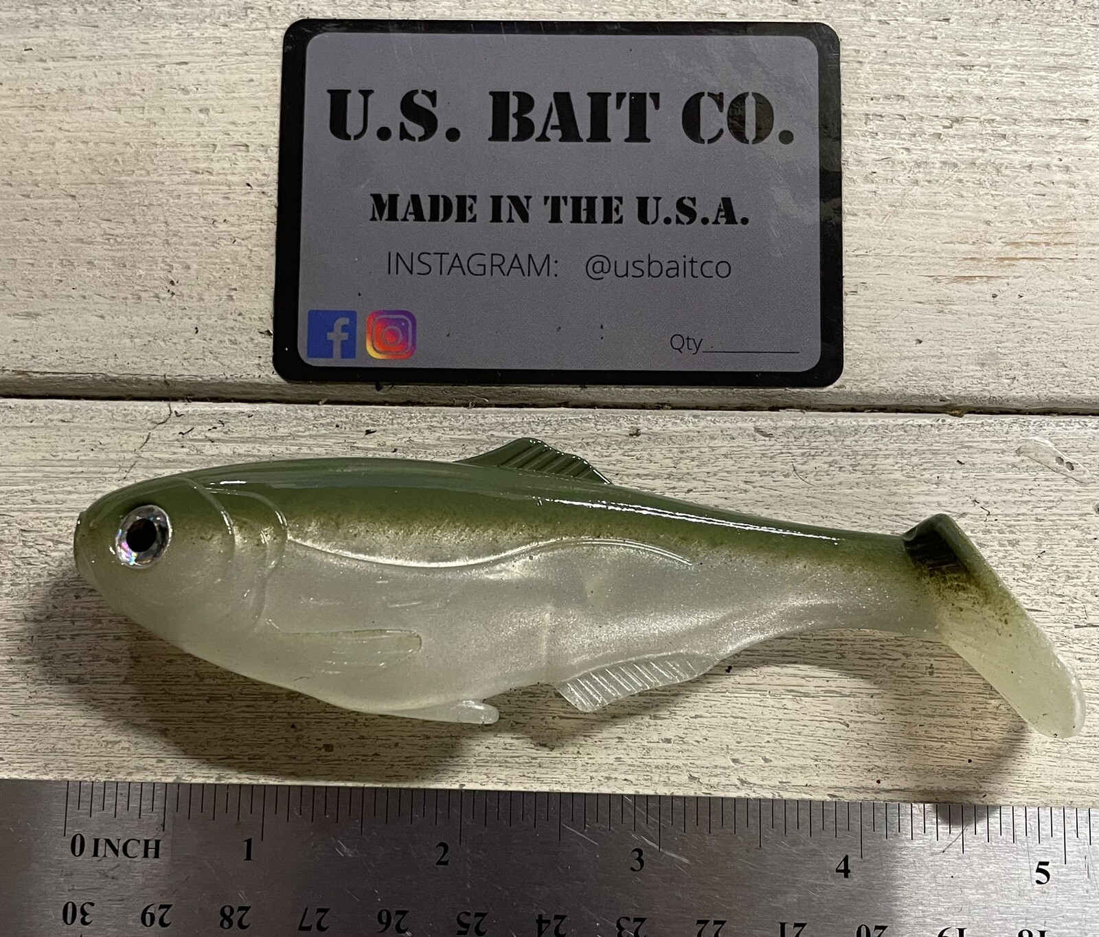 5” inch weedless shad Color green back shad Lot of one bait 8/0 owner beast or 7/0 trokar hooks work best when rigging We personally have been throwing this bait for a couple months it definitely gets bit consistently More colors coming soon Follow us on Instagram @usbaitco