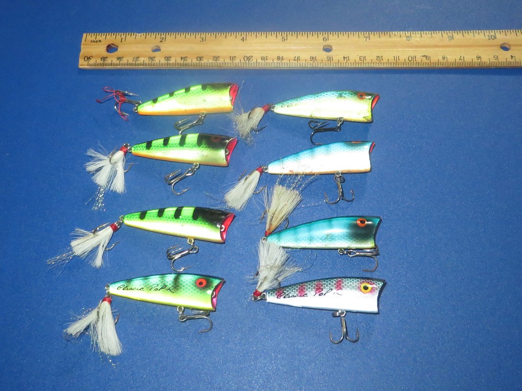 Lot of 8 Rebel Pop-R Topwater Lures HTF NICE GREEN BLUE COLORS