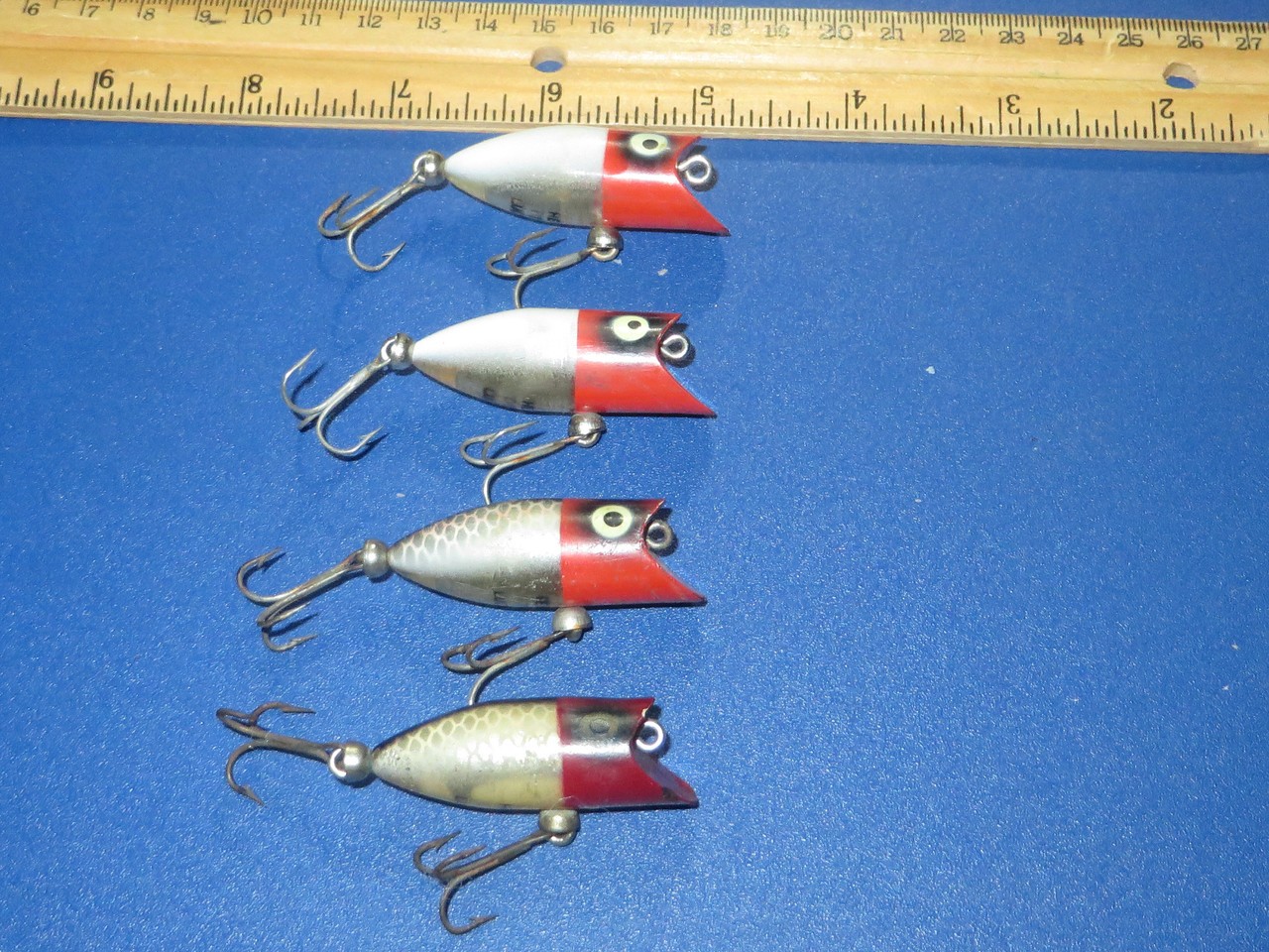 You are bidding on 4 Heddon lures - See the pictures ***** Please read the description and look carefully at the pictures before bidding *********. SALES TAX: Ebay will collect applicable Sales Tax at check-out PAYMENT: We accept paypal for payment and expect payment within 3 days of auction end. US SHIPPING: We Ship to the US & combine shipping for $1 more per extra lot won. ***Wait*** for combined shipping invoice if it does not show up automatically, if paid individually shipping charges can not be combined INT SHIPPING: International Shipping is available on auctions with EBAY Global Shipping enabled, please see the shipping tab. INT COMBINED SHIPPING: International Shipping DOES NOT allow combined shipping so if interested in multiple lots send a message first so one lot can be created for you. ISSUES:I try to describe everything the best I can, please do your part and read the description, see the pictures, and ask questions. If an issue does arise please contact me first to resolve Ask if you have any questions. - Thank you!