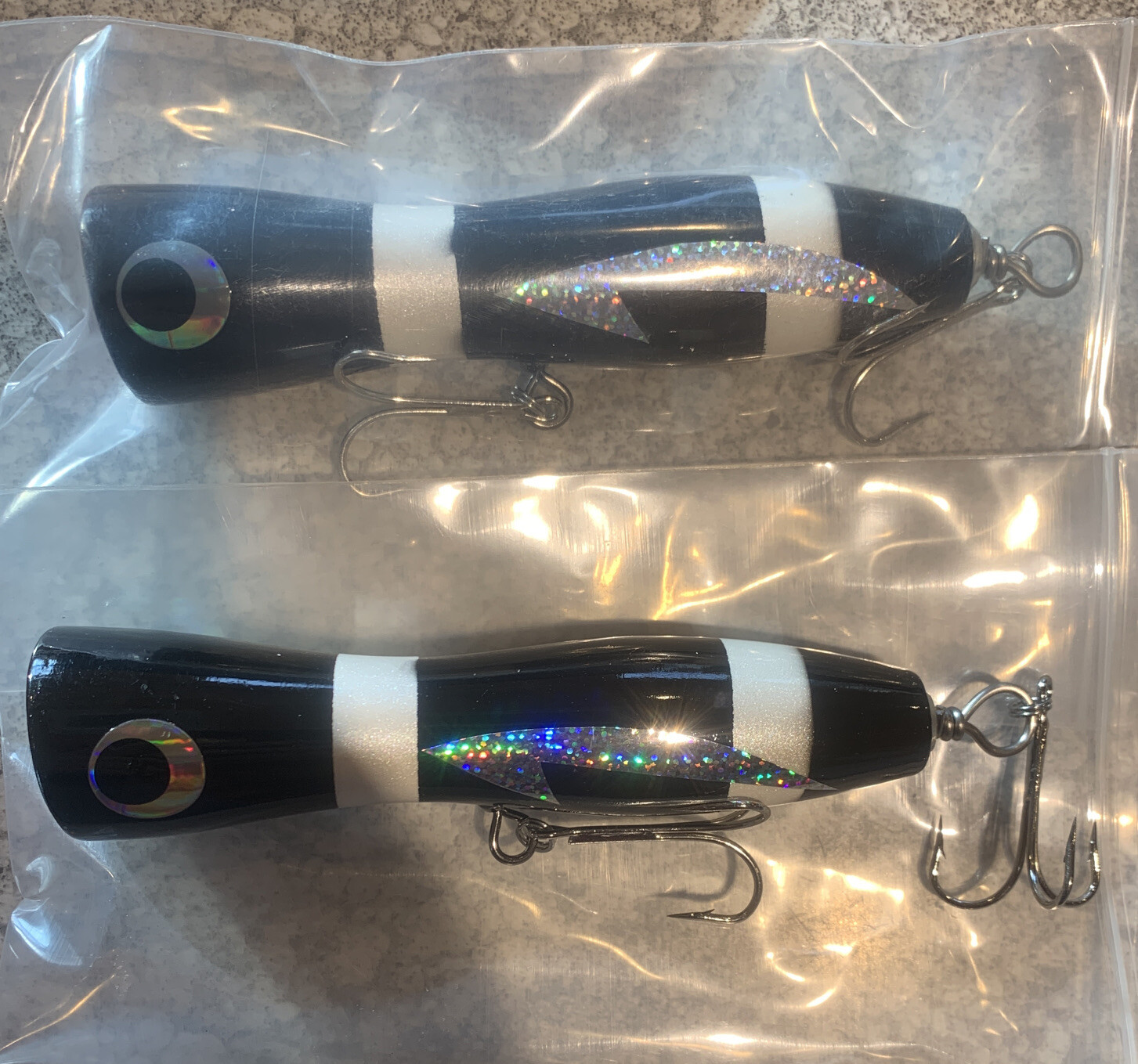 2 Pieces Custom Saltwater Popper Plugs 2 OZ 6” Black And White