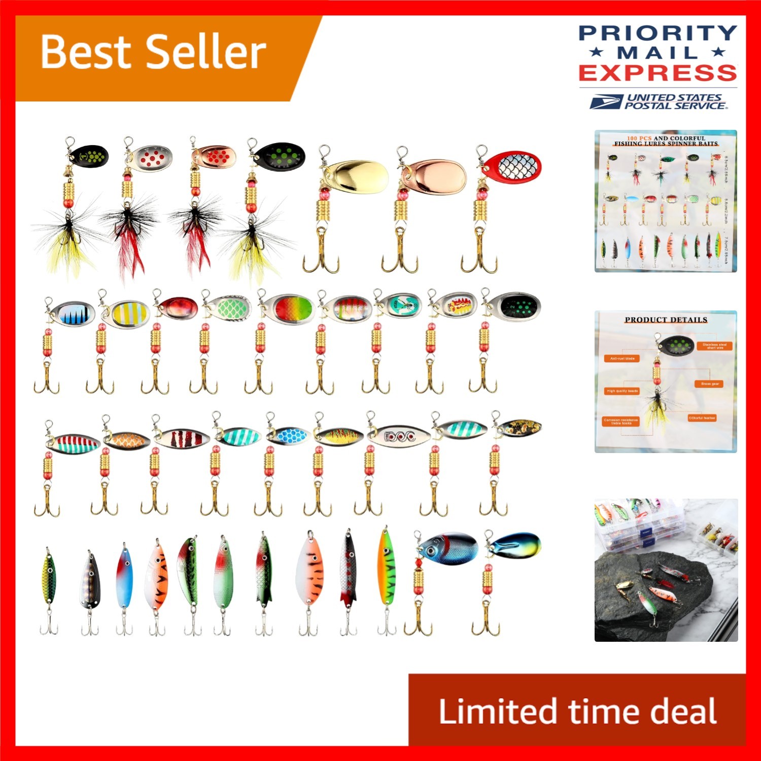 100 Pcs Metal Fishing Lures & Spinner Baits Kit with 4 Tackle Boxes – Perfect...