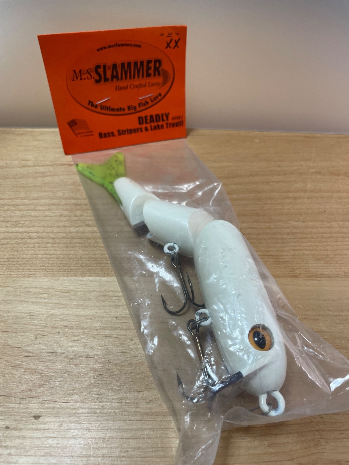 MS Slammer XX Md 9inch White swimbait Topwater wakebait wood fishing lure Unused