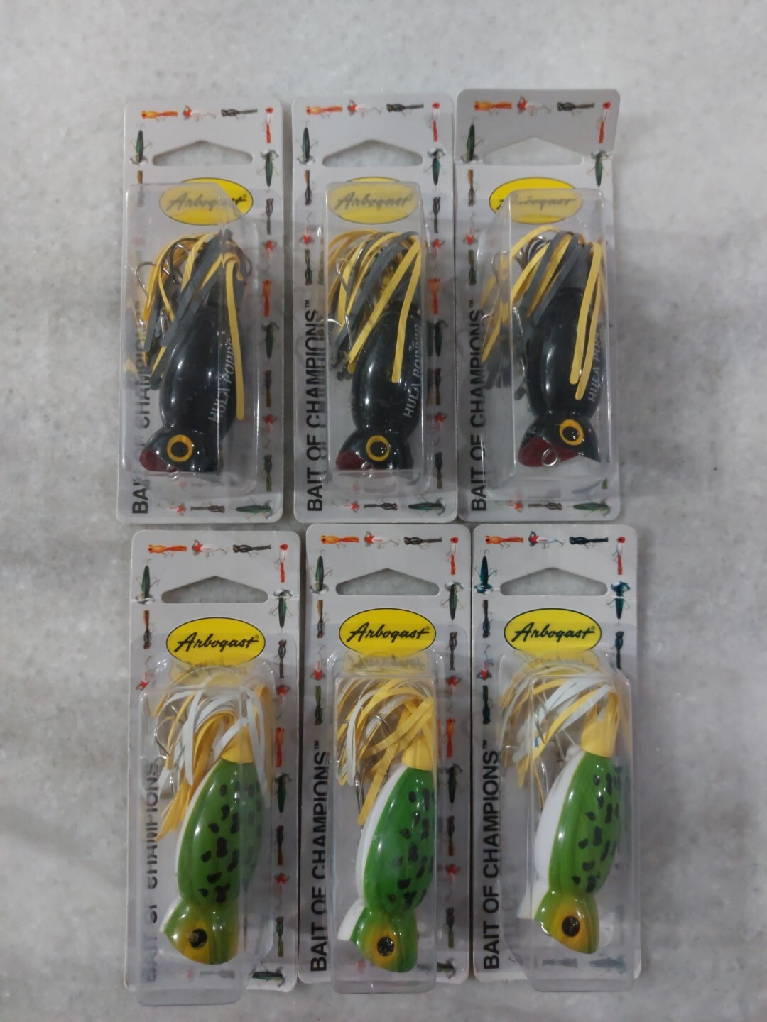 Lot Of 6 Arbogast Hula Poppers 2in 2 colors. Condition is New. Shipped with USPS Ground Advantage.