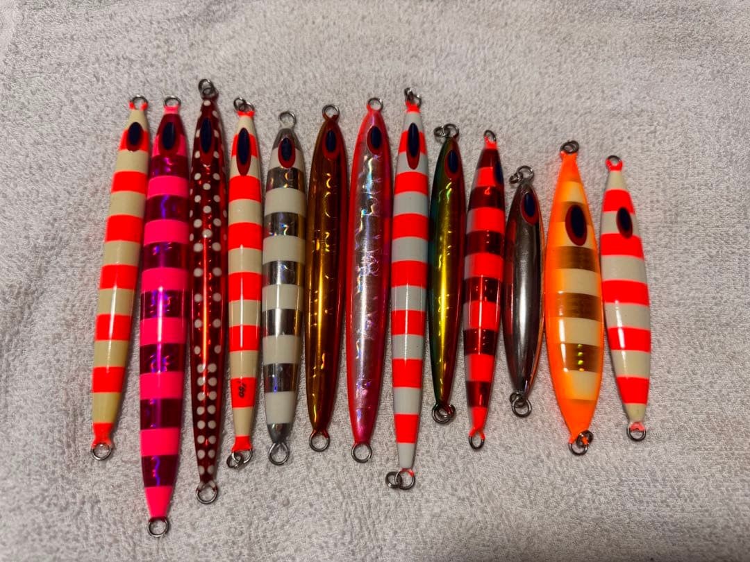 Deep Liner Metal Jig Set 13pcs 80-150g Orange Red White Gold Silver