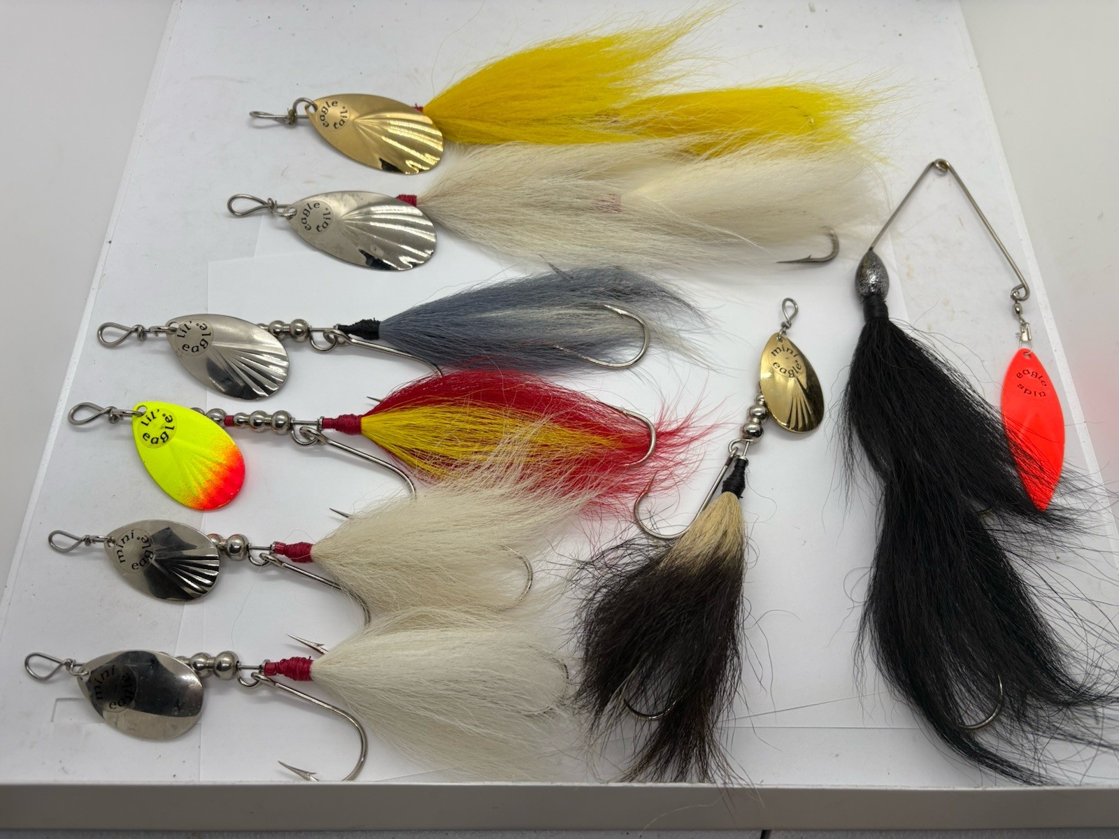 (8) George Wahl Eagle Tail Mini Lil Reg Spin Musky Bucktail Spinnerbait Lure Lot