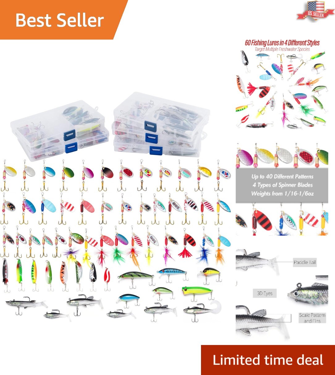 60-PIECE FISHING LURES KIT WITH 5 TACKLE BOXES - PERFECT FOR FRESHWATER * Slide 1 [https://i.ebayimg.com/images/g/whsAAOSw5zRoIwR8/s-l1600.jpg] ‹ › * Slide 2 [https://i.ebayimg.com/images/g/21IAAOSwMnFoIwSF/s-l1600.jpg] ‹ › * Slide 3 [https://i.ebayimg.com/images/g/3YYAAOSwdPFoIwSP/s-l1600.jpg] ‹ › * Slide 4 [https://i.ebayimg.com/images/g/ELMAAOSwRUJoIwSV/s-l1600.jpg] ‹ › * Slide 5 [https://i.ebayimg.com/images/g/7T8AAOSwI8hoIwSa/s-l1600.jpg] ‹ › * Slide 6 [https://i.ebayimg.com/images/g/iWAAAOSwyb1oIwSh/s-l1600.jpg] ‹ › * Slide 7 [https://i.ebayimg.com/images/g/TbQAAOSwvP9oIwSo/s-l1600.jpg] ‹ › * Slide 8 [https://i.ebayimg.com/images/g/4xIAAOSwGy5oIwSu/s-l1600.jpg] ‹ › * Slide 9 [https://i.ebayimg.com/images/g/dcEAAOSwxbdoIwSz/s-l1600.jpg] ‹ › * Slide 10 [https://i.ebayimg.com/images/g/ihsAAOSwtbVoIwS5/s-l1600.jpg] ‹ › 60-PIECE FISHING LURES KIT WITH 5 TACKLE BOXES Perfect for Freshwater Fishing Enthusiasts! WHAT’S INCLUDED: * 60 pieces of fishing lures, ideal for every angling adventure. * Includes 40 spinner baits, 8 fishing spoon lures, 6 soft swimbaits, 5 crankbaits, and 1 popper. * Packaged in 5 high-quality tackle boxes for easy organization and transport. QUALITY YOU CAN TRUST: * Made from components: stainless steel shafts, brass bodies, and detailed laser painting. * Soft baits crafted from tear-resistant silicone for long-lasting usage. * Equipped with high carbon steel hooks to secure your catch with confidence. DESIGNED FOR SUCCESS: * Every lure's color, pattern, and design has been carefully selected for maximum bite rates. * Tested for irresistible swimming action that attracts fish from the depths. VERSATILE FISHING COMPANION: * Target a variety of fish species including bass, trout, walleye, panfish, perch, salmon, and pike. * Suitable for both freshwater and saltwater fishing in diverse water conditions. DIMENSIONS: * Box dimensions: 7 x 4 x 0.8 inches. * Spinner weight range: 0.09oz to 0.14oz (including hook). REASONS TO CHOOSE OUR FISHING LURES KIT: This 60-Piece Fishing Lures Kit is not just an assortment; it's your ticket to an exceptional fishing experience. Crafted with care and precision, each lure is designed to lure in your catch while providing the durability to withstand the elements. Say goodbye to mediocre fishing days, and transform your fishing game with this all-encompassing kit. Whether you are a seasoned angler or a weekend warrior, this kit promises to deliver quality, versatility, and excitement. Elevate your fishing adventures today - grab this incredible fishing lure kit now! Shipping * Free & Fast Shipping - We offer free shipping to most of the USA with a normal delivery time of 3-7 days. However, due to the current situation, additional delivery time (up to 3 weeks) may be required for some items. * Alternative Carriers - We may use alternative carriers (e.g. USPS, FedEx, UPS, etc.) to ensure your package arrives safely and on time. Due to the use of multiple carriers, we are unable to provide a tracking number automatically. * Handling Time - Orders are processed and shipped within 1-2 business days of receiving cleared payment. * Shipping Restrictions - Shipping to Alaska, Hawaii, Puerto Rico, Guam, and other US territories may incur shipping charges or delivery restrictions. Please contact us before ordering, or your order can be refunded/cancelled. * State Restrictions - There may be restrictions based on your state of purchase. For example, certain items may not be shipped to California due to state regulations. * Contact for Tracking Updates - If you require tracking updates or have any concerns about the delivery of your order, please feel free to contact us, and we will be happy to assist you. [https://res.cloudinary.com/hmdenahha/image/upload/v1486463259/shipping_zpsehr4l7lo_vs2j70.jpg] Return * 30-Day Hassle-Free Returns - We want you to be completely satisfied with your purchase. If you are not, you can return the item within 30 days of receiving it for a full refund or exchange. * Easy Return Process - To start a return, simply contact us and we will provide you with a prepaid return shipping label and detailed instructions. * Restocking Fee - There are no restocking fees for returns. However, the buyer is responsible for return shipping costs if the return is not due to a seller's error. * Refund Processing Time - Refunds will be processed within 5 business days of receiving the returned item in its condition. [https://res.cloudinary.com/hmdenahha/image/upload/v1486462923/returns_zpsxr9puwik_mwvvon.jpg] Payment We accept all major credit cards, PayPal, and Apple Pay for your convenience. Your payment information is secure and encrypted to ensure a safe and seamless transaction. Please complete your payment within 3 days of purchase to avoid any delays in shipping. [https://www.ecommercebytes.com/wp-content/uploads/2020/05/eBay_Managed_Payments.jpg] Feedback Your feedback is extremely important to us. We strive to provide the best products and customer service possible. If you are satisfied with your purchase, please take a moment to leave us a positive review. If you have any concerns or issues with your order, please contact us before leaving negative feedback. We are committed to resolving any problems and ensuring your satisfaction. [https://assets.cashforyourmac.com/image/upload/v1/Static/logo/ebay-rating.svg] Contact Us If you have any questions or concerns, please feel free to out to our customer support team. You can contact us through the eBay messaging system. We are available Monday to Friday, 9:00 am to 5:00 pm EST, and we will do our best to respond to your inquiry within 24 hours. Buy it now and enjoy a pleasant shopping experience!