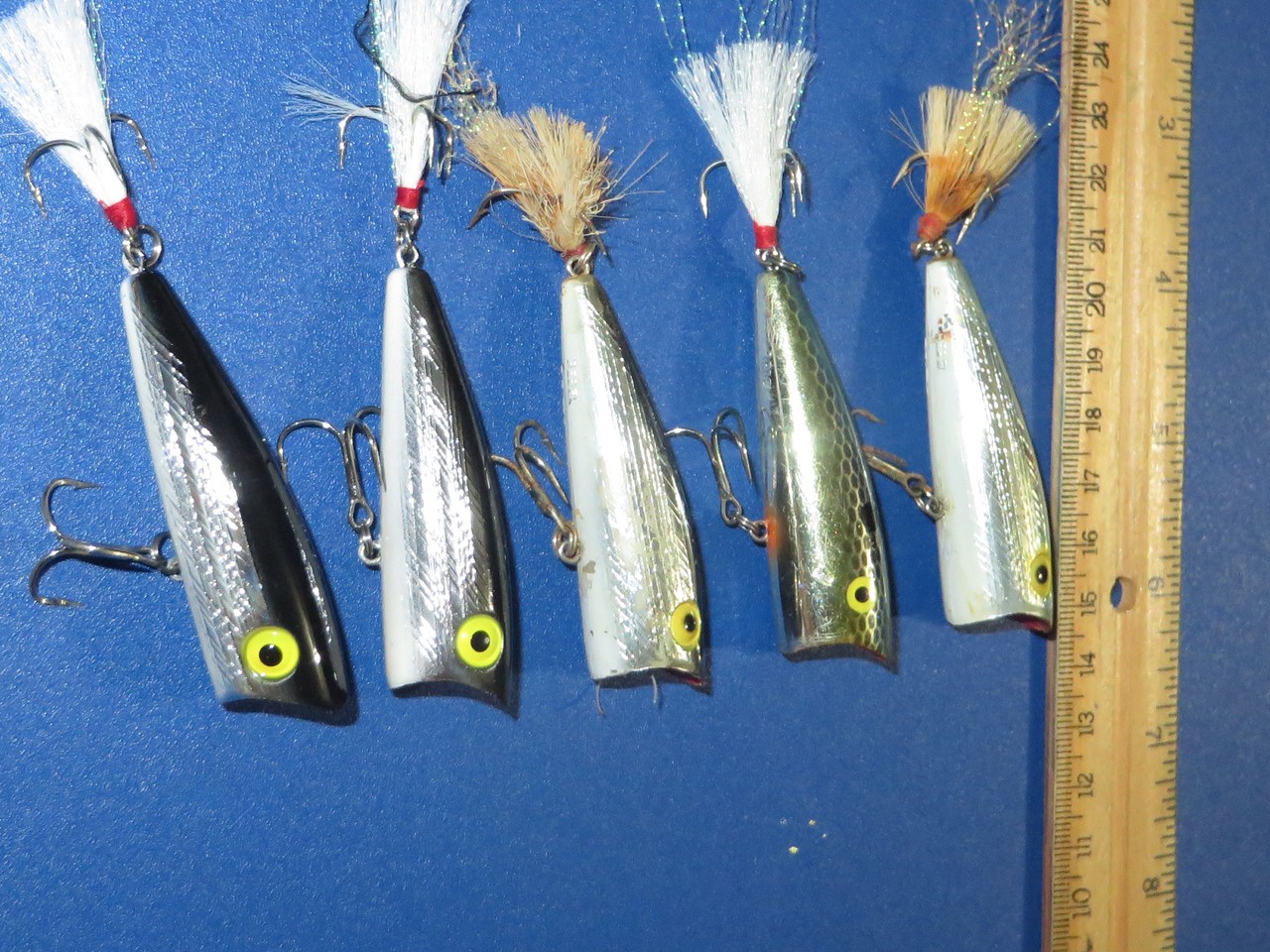 Lot of 5 Rebel Pop-R Topwater Lures 2 Inch Chrome Blue Black