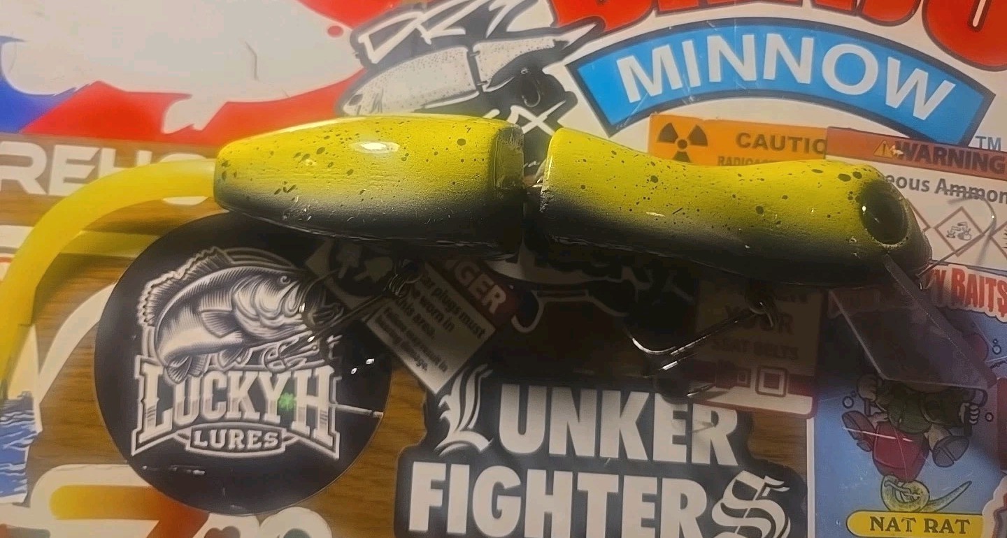 Light usage, some light hook rash see pictures. The Lunker Fighters Diesel Lizard XL Wood Swimbait is a topwater fishing lure designed for freshwater fishing. Made of wood with a positive buoyancy, this bait features a mouse/rat shape and a total length of 6-11 inches, including the tail. The lure comes in multiple colors and weighs 3.5 ounces, making it ideal for attracting a variety of fish species both in freshwater and saltwater environments. The XL model is crafted by the brand Illude in the United States, offering anglers a high-quality and effective bait for their fishing needs.