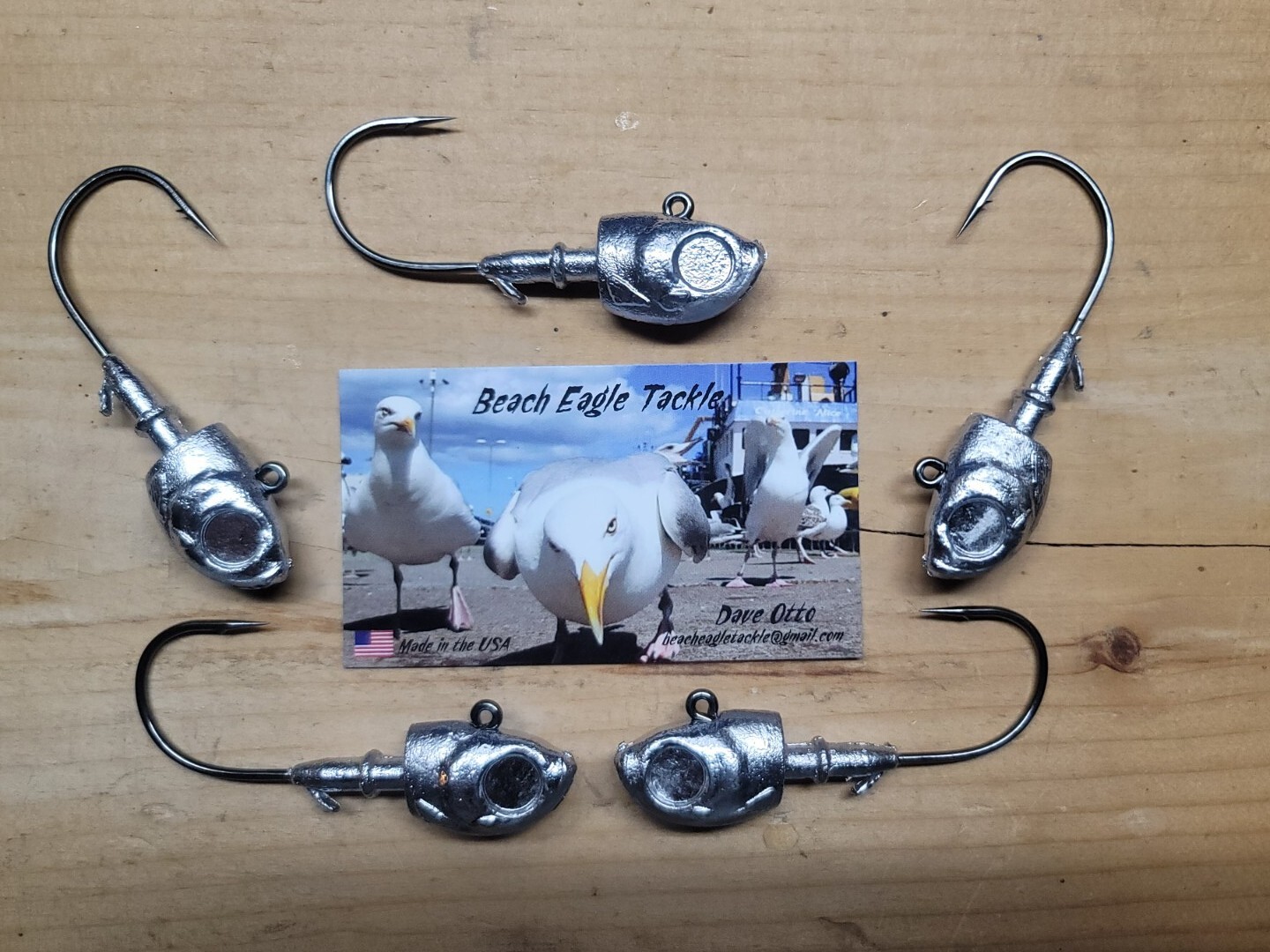 HERRING HEAD JIGS - 5 Pack WEIGHT: 1-1/2oz (1.5oz) HOOK SIZE: 6/0 FINISH: Raw ( none ) Numerous weights and hook combinations are available. Please contact me with your needs. All order sizes accepted. Due to the consistent increase in shipping charges, I am no longer able to offer free shipping. Sorry for the inconvenience. Thank You Beach Eagle Tackle