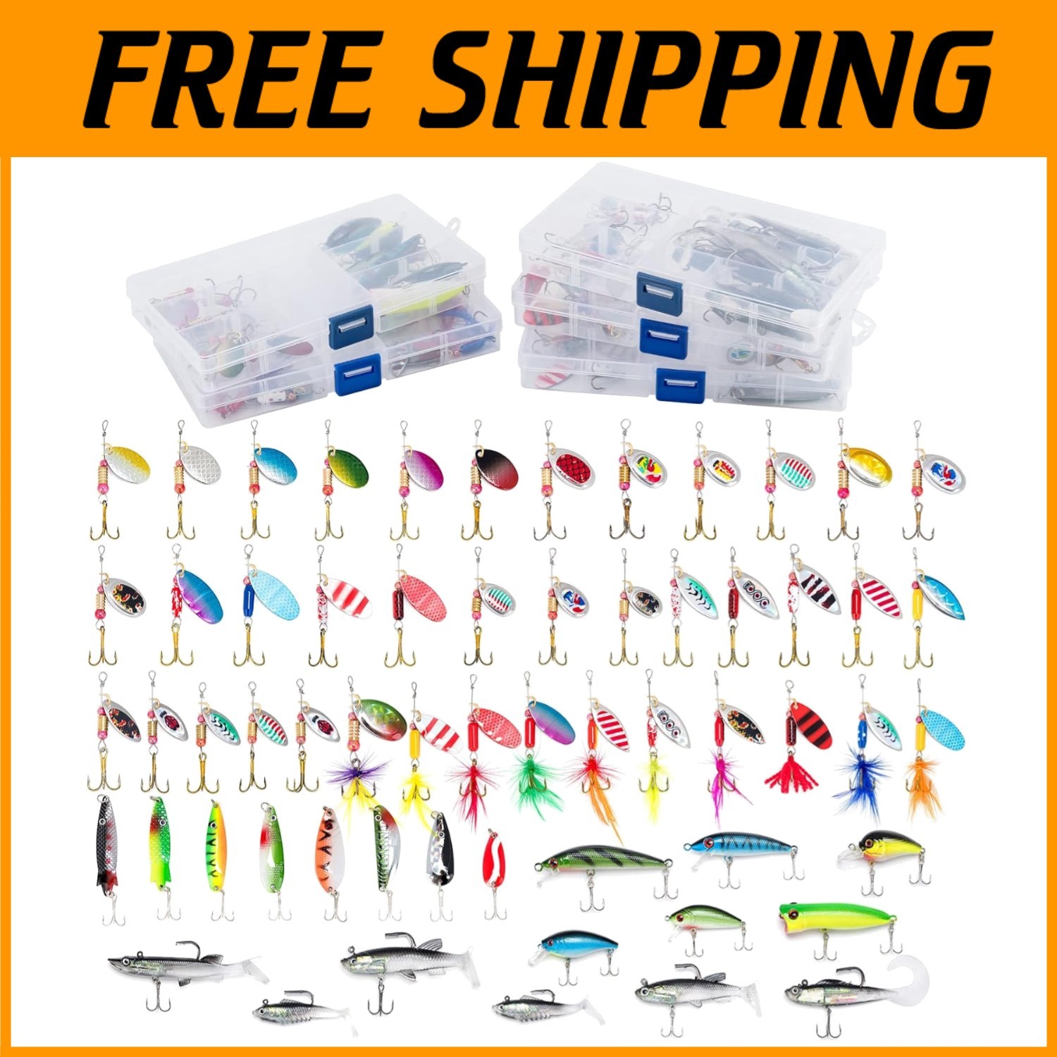 MEGA 60-PIECE BASS LURES KIT WITH SOFT SWIMBAITS * Slide 1 [https://i.ebayimg.com/images/g/CqgAAeSwCLNpcLhZ/s-l1600.jpg] ‹ › * Slide 2 [https://i.ebayimg.com/images/g/h4wAAeSwpXRpcLhq/s-l1600.jpg] ‹ › * Slide 3 [https://i.ebayimg.com/images/g/jisAAeSwzTppcLhx/s-l1600.jpg] ‹ › * Slide 4 [https://i.ebayimg.com/images/g/LIUAAeSwGC9pcLh3/s-l1600.jpg] ‹ › * Slide 5 [https://i.ebayimg.com/images/g/KrwAAeSwqSRpcLh9/s-l1600.jpg] ‹ › * Slide 6 [https://i.ebayimg.com/images/g/JikAAeSwscxpcLiD/s-l1600.jpg] ‹ › * Slide 7 [https://i.ebayimg.com/images/g/c4EAAeSwVn5pcLiI/s-l1600.jpg] ‹ › * Slide 8 [https://i.ebayimg.com/images/g/h80AAeSwIC9pcLiP/s-l1600.jpg] ‹ › * Slide 9 [https://i.ebayimg.com/images/g/~~EAAeSwisVpcLiU/s-l1600.jpg] ‹ › MEGA 60-PIECE BASS LURES KIT WITH SOFT SWIMBAITS OVERVIEW: Experience the ultimate fishing adventure with our expansive 60-piece Mega Bass Lures Kit, thoughtfully curated to include everything you need to reel in your next big catch. This comprehensive kit comes with five tackle boxes, ensuring organization and ease of transport for your fishing trips. WHAT'S INSIDE: * 40 Spinner Baits: Engineered with stainless steel shafts and brass bodies, adorned with laser-painted spinner blades for maximum attraction. * 8 Fishing Spoon Lures: Perfectly balanced to create enticing movements beneath the water’s surface. * 6 Soft Swimbaits: Crafted from tear-resistant silicone for extreme realism and durability. * 5 Crankbaits: Designed to mimic natural prey, luring in fish with irresistible action. * 1 Popper: To create surface commotion, capturing the attention of predatory fish. QUALITY * All lures are constructed from high-quality materials to withstand the rigors of fishing. * Equipped with high carbon steel hooks, providing reliability and ensuring the security of your catch. CAREFULLY SELECTED FOR SUCCESS * Every color, pattern, and component is meticulously picked to maximize bite rates. * All lures undergo rigorous testing to guarantee that each piece displays an irresistible swimming action. MULTI-PURPOSE UTILITY This diverse lure kit is versatile enough to target an array of species, including bass, trout, walleye, and more, in both freshwater and saltwater environments. Whether you’re fishing from a boat or the shore, this kit is designed to adapt to various conditions and fishing styles. CONVENIENT DIMENSIONS The tackle boxes measure 7 x 4 x 0.8 inches, making them compact and easy to fit into your tackle bag without any hassle. Spinners weigh between 0.09oz to 0.14oz including the hook, allowing for easy casting and control. WHY CHOOSE OUR MEGA 60-PIECE LURES KIT? Don’t settle for less when you can equip yourself with the ultimate fishing arsenal. Our Mega 60-Piece Bass Lures Kit ensures you’ll be ready for any fishing challenge that comes your way. Elevate your fishing game and enjoy unforgettable moments on the water—order yours today! Shipping * Free & Fast Shipping - We offer free shipping to most of the USA with a normal delivery time of 3-10 business days. However, due to various situations, additional delivery time (up to 3 weeks) may be required for some items. * Alternative Carriers - We may use alternative carriers (e.g. USPS, FedEx, UPS, etc.) to ensure your package arrives safely and on time. Due to the use of multiple carriers, we are unable to provide a tracking number automatically. * Handling Time - Orders are processed and shipped within 1-5 business days of receiving cleared payment. * Shipping Restrictions - Shipping to Alaska, Hawaii, Puerto Rico, Guam, and other US territories may incur shipping charges or delivery restrictions. Please contact us before ordering, or your order can be refunded/cancelled. * State Restrictions - There may be restrictions based on your state of purchase. For example, certain items may not be shipped to California due to state regulations. * Contact for Tracking Updates - If you require tracking updates or have any concerns about the delivery of your order, please feel free to contact us, and we will be happy to assist you. [https://res.cloudinary.com/hmdenahha/image/upload/v1486463259/shipping_zpsehr4l7lo_vs2j70.jpg] Return * Please see our ebay return policy. * We do not accept return on most products. This is to avoid customers mis-using ebay returns. All sales are final. Please be sure to check the return policy listed at the top of the listing. * In rare cases, we may accept returns, if the buyer pays both ways shipping and 20% restocking fee. * If you are un-sure of return policy of a particular item, please ask before buying. [https://res.cloudinary.com/hmdenahha/image/upload/v1486462923/returns_zpsxr9puwik_mwvvon.jpg] Payment We accept all major credit cards, PayPal, and Apple Pay for your convenience. Your payment information is secure and encrypted to ensure a safe and seamless transaction. Please complete your payment within 3 days of purchase to avoid any delays in shipping. [https://www.ecommercebytes.com/wp-content/uploads/2020/05/eBay_Managed_Payments.jpg] Feedback Your feedback is extremely important to us. We strive to provide the best products and customer service possible. If you are satisfied with your purchase, please take a moment to leave us a positive review. If you have any concerns or issues with your order, please contact us before leaving negative feedback. We are committed to resolving any problems and ensuring your satisfaction. [https://assets.cashforyourmac.com/image/upload/v1/Static/logo/ebay-rating.svg] Contact Us If you have any questions or concerns, please feel free to out to our customer support team. You can contact us through the eBay messaging system. We are available Monday to Friday, 9:00 am to 5:00 pm EST, and we will do our best to respond to your inquiry within 24 hours. Buy it now and enjoy a pleasant shopping experience!