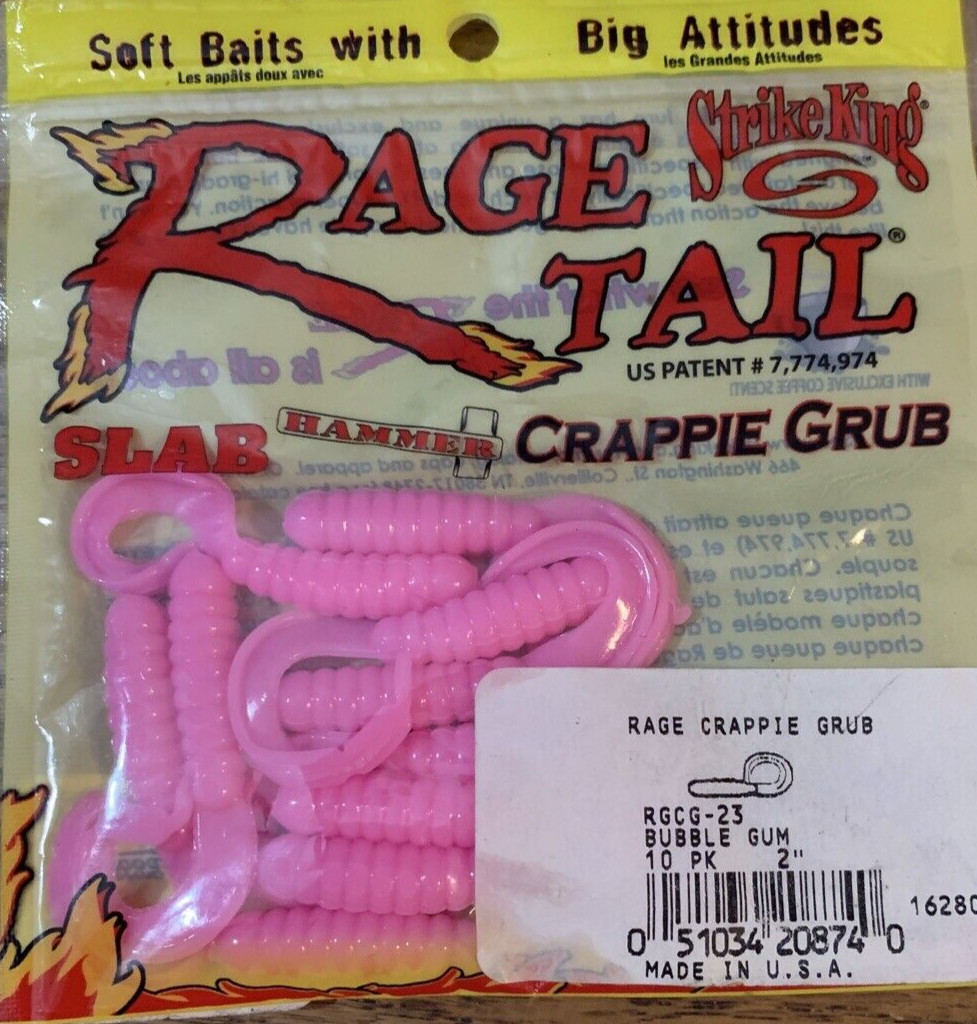Rage Tail Strike King 2” Crappie Grub Bubble Gum SHIPS SAME BUS DAY Condition is New. Shipped with USPS First Class. Inventory Box Number; 689 ,15 in box 715 & 753