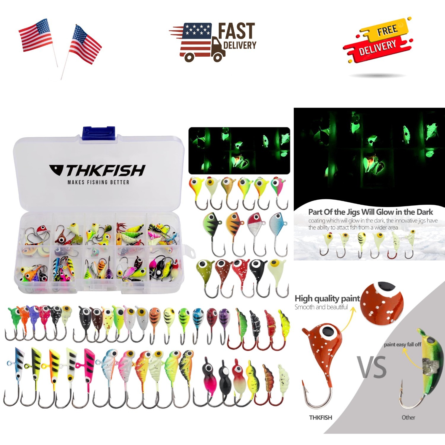 Ice Fishing Jigs 54pcs Glow Ice Fishing Lures, Walleye Jig Ice Fishing Jigs K...