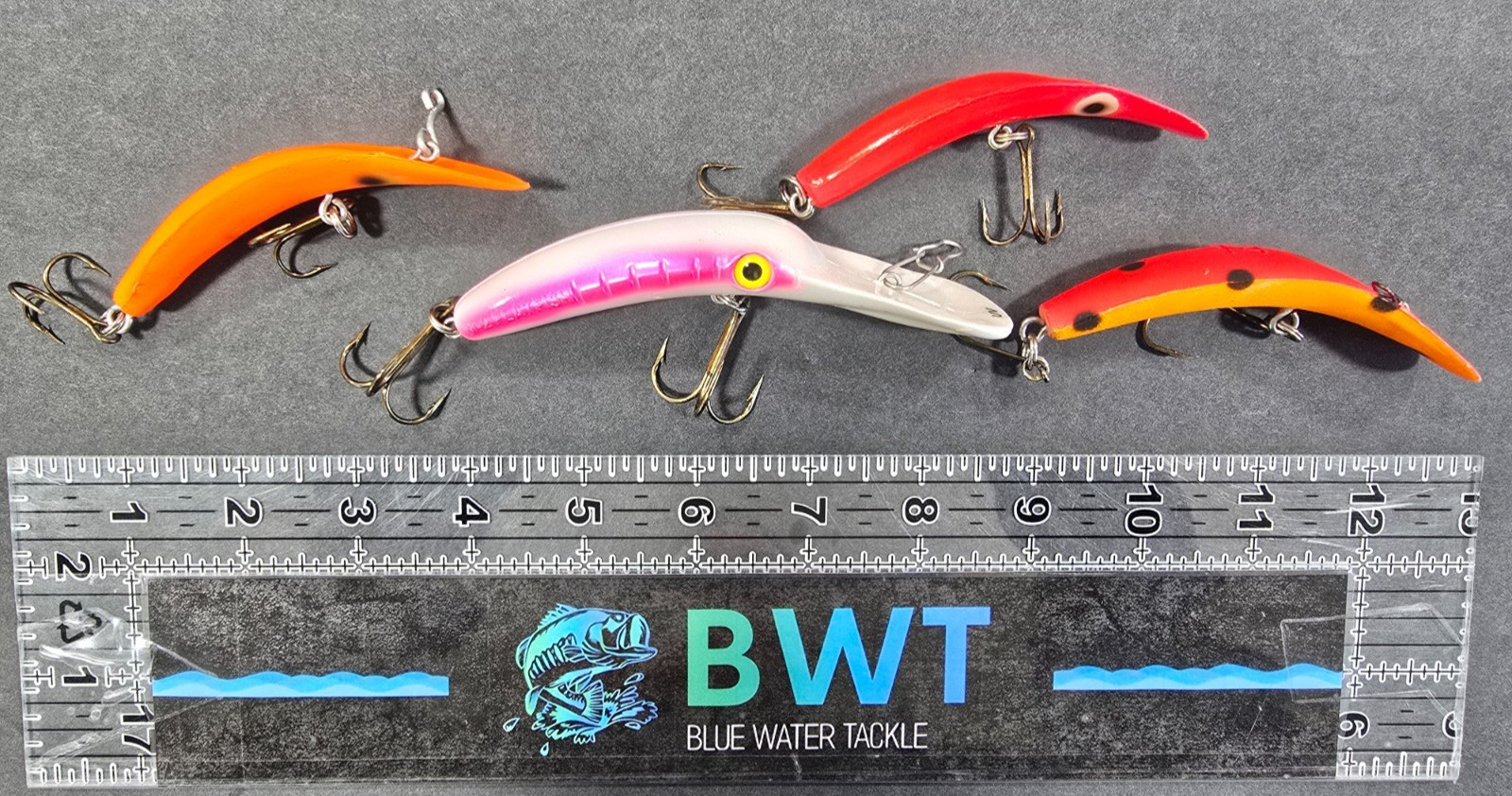 Lot of 4 Trolling Plugs-Walleye, Salmon-Various Colors, Sizes, and Brands