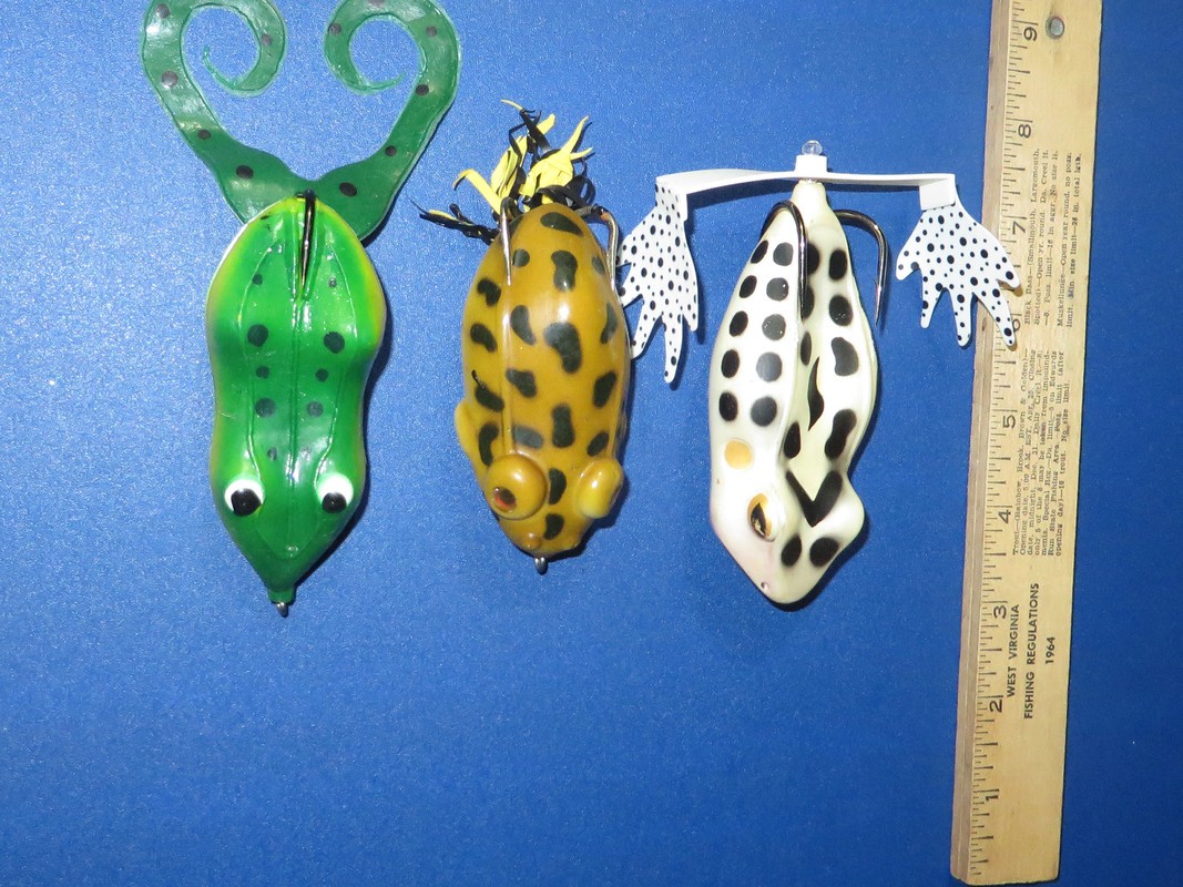 You are bidding on 3 SPro Frog lures - See the pictures ***** Please read the description and look carefully at the pictures before bidding *********. SALES TAX: Ebay will collect applicable Sales Tax at check-out PAYMENT: We accept paypal for payment and expect payment within 3 days of auction end. US SHIPPING: We Ship to the US & combine shipping for $1 more per extra lot won. ***Wait*** for combined shipping invoice if it does not show up automatically, if paid individually shipping charges can not be combined INT SHIPPING: International Shipping is available on auctions with EBAY Global Shipping enabled, please see the shipping tab. INT COMBINED SHIPPING: International Shipping DOES NOT allow combined shipping so if interested in multiple lots send a message first so one lot can be created for you. ISSUES:I try to describe everything the best I can, please do your part and read the description, see the pictures, and ask questions. If an issue does arise please contact me first to resolve Ask if you have any questions. - Thank you! for looking at our Rapala , Heddon , Smithwick , Cordell , Megabass , Paw Paw , Bagley , Luhr Jensen , Storm , Lucky Craft ,Bomber, Rebel , Manns , Strike King , Creek Chub ,Berkley , Musky , Daiwa , Jackall , Gibbs , Yozuri , Koppers , Kautzky , Lindy , Pflueger , Poes , Sebile , Shakespheare , Sebile , South Bend , Spro , ABU , Boone , Buckeye , Pico , Rabble Lures. As well as our tackle boxes and Rod and Reels.