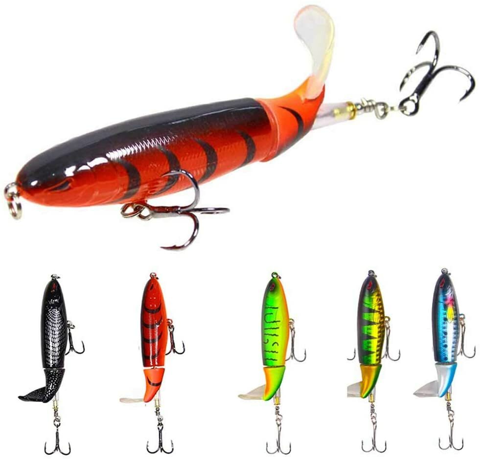 * 360degree Rotating Spinner Tail Baits: exactly like a whopper plopper/choppo making a loud 'bloop' in the water;You can fish these many different ways fast, moderate, slow, jerk or pause em and you can also swim them slightly below water aswell. * Excellent Lures body: looks realistic in the water,the lure is finished with 3D living eyes and an ultra-realistic paint job. Laser Lifelike fish scale with brilliant colors that reflect light to attract the fishes. Built-in small metal piece keep the lures in balanced and get a decent casting distance. It is the best whopper fishing lures for walleye pike musky fish plopper. * HIGH QUALITY HOOK: It can catch fish very easy; 2 super-sharp hooks, excellent puncture ability, And the head adopts a double loop design. especially important for scholing striper and other monster bass, Fish don't simply hit the rotating tail fishing lure, They attack it. * Covering Water Effortlessly: you speed it up so it throws water like a swamp buggy with the same deep, hollow fish-catching sound as the original, the lure gets bit. It still casts a mile, and its ability to work at the widest possible range of speeds and catch some of those fish others might be missing, makes it a great tool for honing in on the most productive speeds and rhythms for that particular day. * APPLICATION: Whopper plopper fishing lure have a extra weight on the belly, makes it do a farther casting distance effortless. Suitable for freshwater and seawater, powerful fishing tools for fishing enthusiasts, and great gift for fisherman. fishing lure [https://m.media-amazon.com/images/S/aplus-media-library-service-media/72ce79f5-709e-4001-89a5-761e912b38e3.__CR0,0,970,300_PT0_SX970_V1___.jpg] Six characteristics of the product 1. 3D realistic looking eyes 2. Realistic shape looks 3. High quality link parts 4. Ultra sharp hooks 5. Inner bass steel ball 6. Flexible fishtail Tip: The hook is too sharp, please use it carefully fish [https://m.media-amazon.com/images/S/aplus-media-library-service-media/dbbb7756-89f9-40a3-b591-c5c4abe5ebfc.__CR0,0,300,300_PT0_SX300_V1___.jpg] fishing lure [https://m.media-amazon.com/images/S/aplus-media-library-service-media/c12adb26-0ad5-426c-8970-e8c9b1f01db7.__CR0,0,300,300_PT0_SX300_V1___.jpg] fishing lure [https://m.media-amazon.com/images/S/aplus-media-library-service-media/e36c6caf-48e4-46dc-a0be-e3df3d47afa7.__CR0,0,300,300_PT0_SX300_V1___.jpg] JUST LIKE REAL FISH Constructed with a tough ABS plastic body that is supported by strong mesh woven fabric,the swimbaits feature life-like 3D eye and pearl powder coating design which can trigger the natural predator instinct of these freshwater or saltwater monsters. SOUND LIKE A FISH SWIMMING 360degree Rotating Spinner Tail Baits exactly like a whopper plopper/choppo making a loud 'bloop' in the water that attracts the fishes and induce them to attack. 6# SHARP TREBLE JIG HOOKS!! The hooks are made up from high density carbon steel material it can bear with high tensions and prevent fish 's escape. fishing lure [https://m.media-amazon.com/images/S/aplus-media-library-service-media/1721a210-a3c7-40a5-a996-bab9bc87741c.__CR0,0,300,300_PT0_SX300_V1___.jpg] These lures here do a mighty fine job at catching fish and are very easy on the wallet! You can fish these many different ways fast, moderate, slow, jerk or pause em and you can also swim them slightly below water aswell the tail paddle will still make plenty noise to get attention just depends on how ya wanna go about it. Packege include: 5 X Hard Fishing Lure SPECIFICATIONS: * Weight: 13g/0.46oz * Length: 100mm/3.94" * Hooks: 6# Treble Hooks * Buoyancy: Top water fishing [https://m.media-amazon.com/images/S/aplus-media-library-service-media/d7772b5b-c132-474a-9b4c-a2f29e63b069.__CR0,0,220,220_PT0_SX220_V1___.jpg] fishing [https://m.media-amazon.com/images/S/aplus-media-library-service-media/24a8db95-d29e-4374-8d73-337f8bf1890e.__CR0,0,220,220_PT0_SX220_V1___.jpg] fishing [https://m.media-amazon.com/images/S/aplus-media-library-service-media/31cefd9b-a563-47ea-97fd-372b099d3f16.__CR0,0,220,220_PT0_SX220_V1___.jpg] fishing [https://m.media-amazon.com/images/S/aplus-media-library-service-media/9ddb1aef-b73d-4801-bf80-c3fec6a470fd.__CR0,0,220,220_PT0_SX220_V1___.jpg] WHETHER IT’S A LEISURELY FISHING BY THE RIVER OR DRIVE A YACHT OUT TO SEA FOR A FISHING HOLIDAY WHEN YOU CATCH THE FISH YOU CAUGHT GREAT SENSE OF ACCOMPLISHMENT!