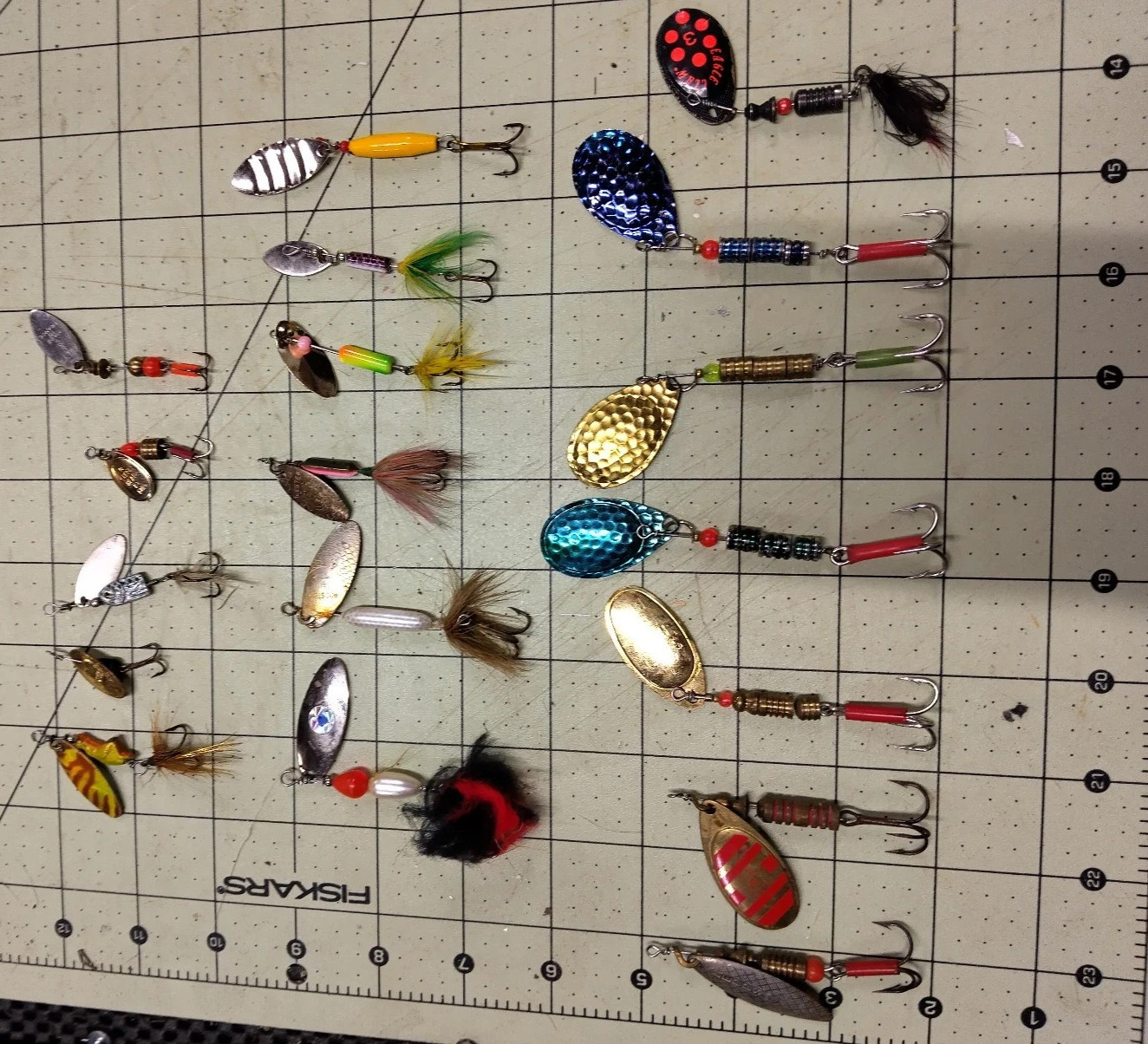 Lot of 18 Vintage Inline Spinners, lots of different brands, Very Nice