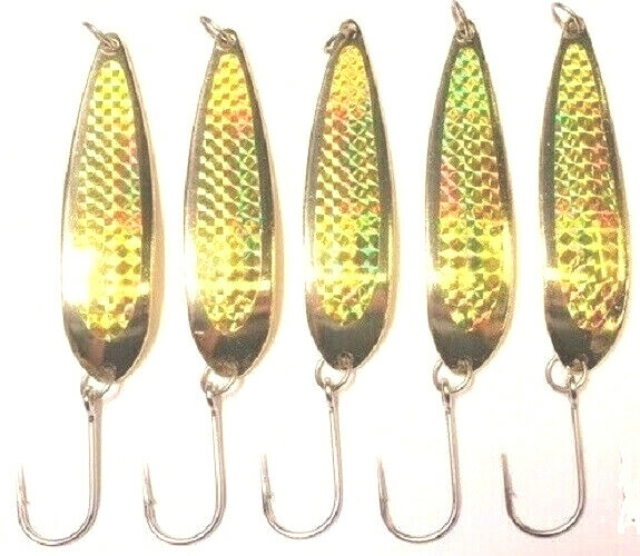5- 5oz. Crocodile Spoons Gold Holographic Fishing Lure Stainless Steel Hooks