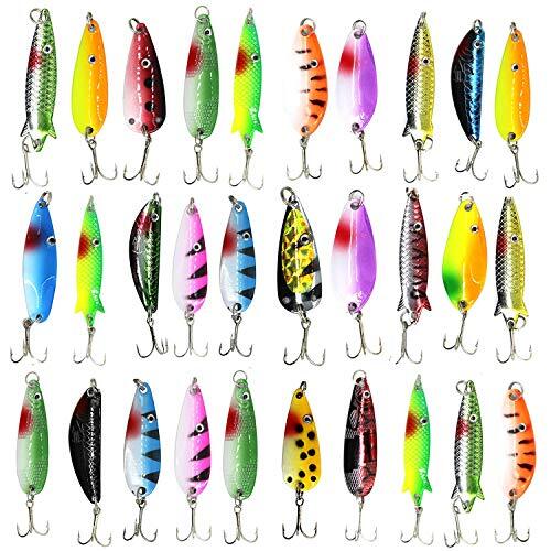 Fishing Spoons Metal Fishing Lures Kit, 30pcs Colorful Hard Fishing Spinner