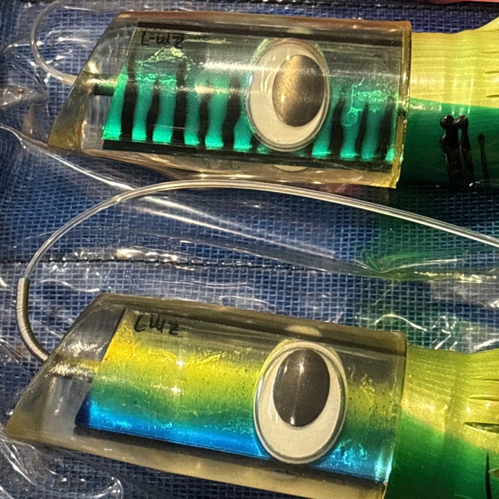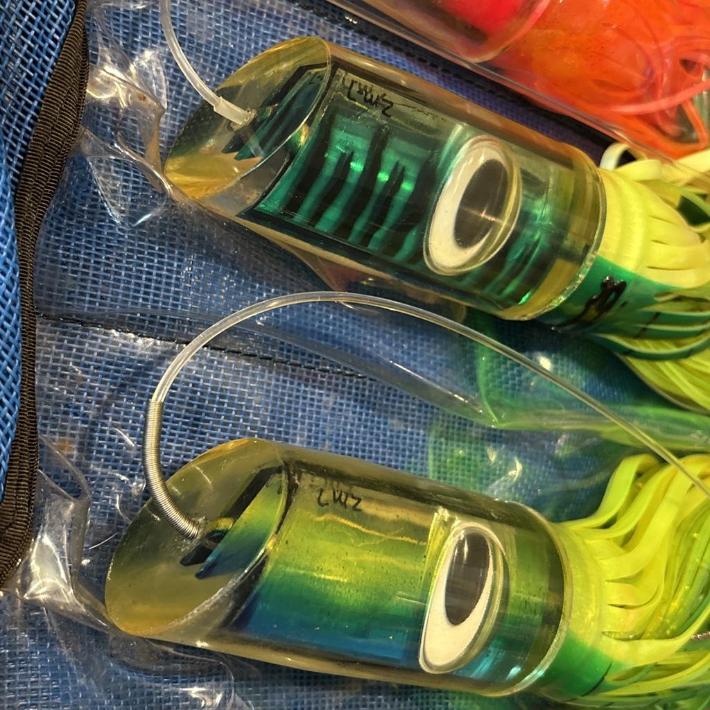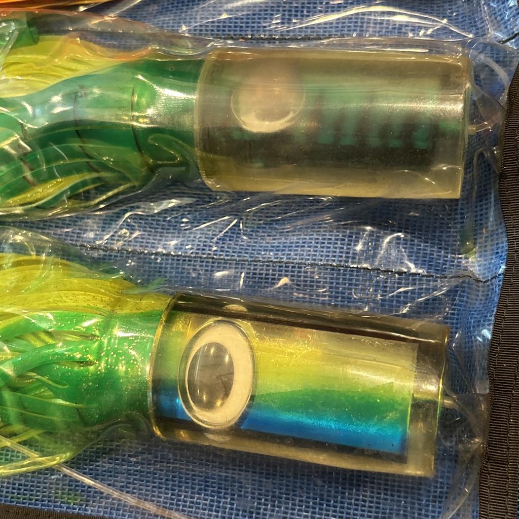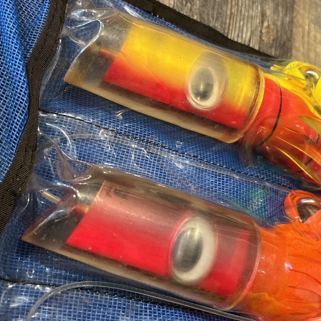 Vintage Super Big Game marlin trolling lures; Super Plunger style
