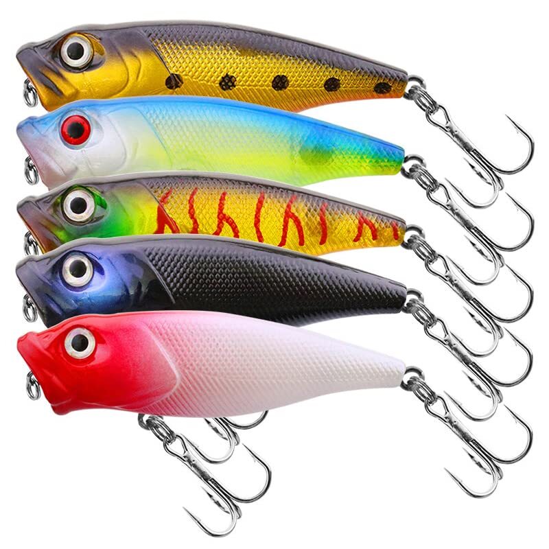 OriGlam 5pcs Fishing Popper Lure, Fish Baits Bass Hard Lures 3D Eyes Poppers,