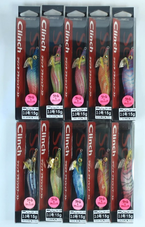 10 Shimano Sephia Clinch Flashboost #3.0 15g Rattle In Type Squid Jig Lot.