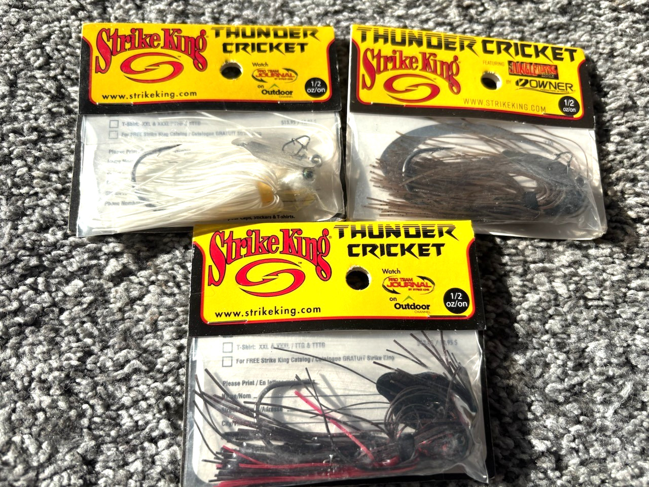 3 New STRIKE KING LURES 1/2oz THUNDER CRICKET Bladed Baits SWIM JIGS Pro Colors