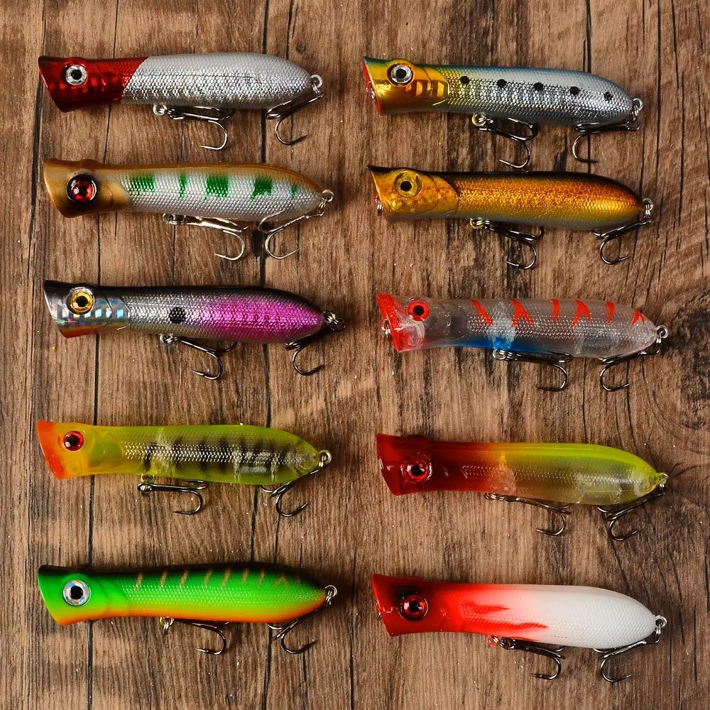 10pc Top Water Poppers For Bass & Most Freshwater Fish Fishing Lures