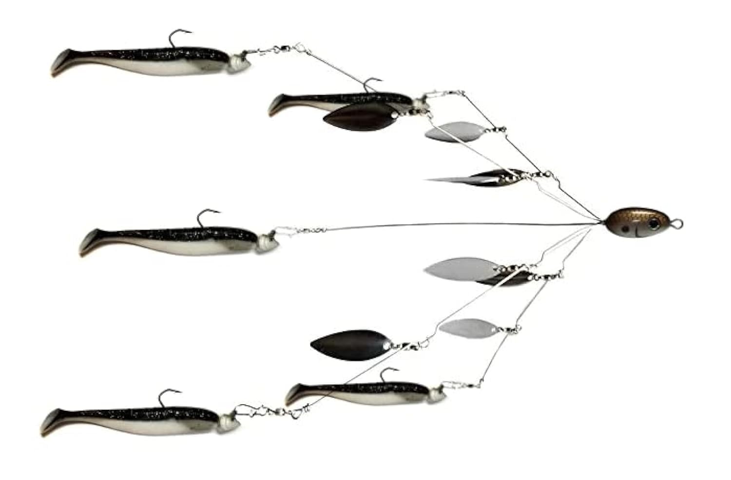 Fishing Vault Fully Rigged 5 Arms 8 Bladed Umbrella Rig Bass Lure W/Swim Bait...