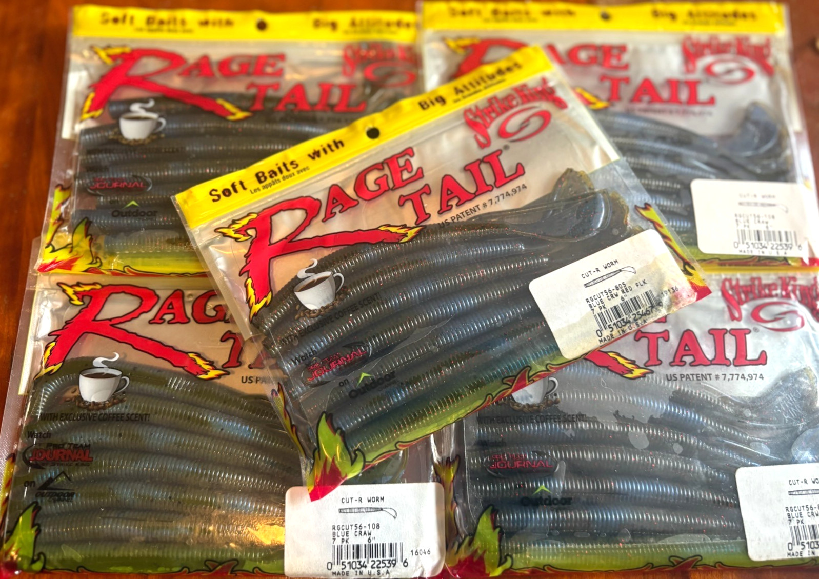 5 NEW Packs STRIKE KING 6" RAGE TAIL CUT-R WORM Bulk Worms BLUE CRAW Red Flk