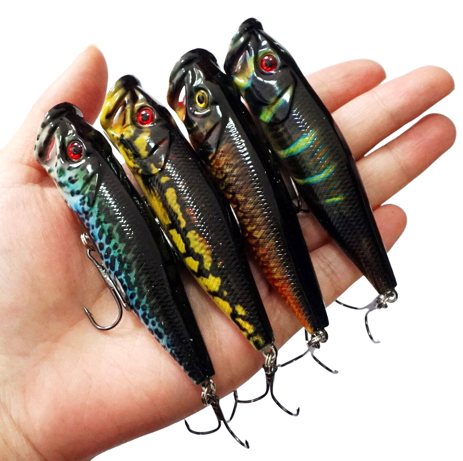 4PCS Fishing Lures Topwater Popper Bait Hard Artificial Wobblers Swimbait 9.5cm