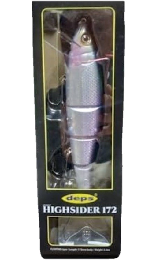Introducing the Deps Highsider 172, a top-of-the-line swimbait designed for freshwater fishing enthusiasts. This bait features a stunning Aurora Glitter color and a fish shape that is sure to attract attention. Its positive buoyancy and 172mm length make it the perfect choice for those looking to target all freshwater species, while its 2.5oz weight ensures a high float and a long-lasting performance. Japan by Deps, a trusted brand in the fishing industry, this swimbait is the perfect addition to any tackle box. Whether you're a seasoned angler or just starting out, the Highsider 172 is sure to deliver results.